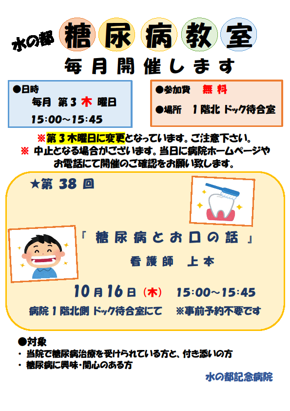 令和4年1月からは、 毎月1回 15:00 から 糖尿病教室も開催しています。