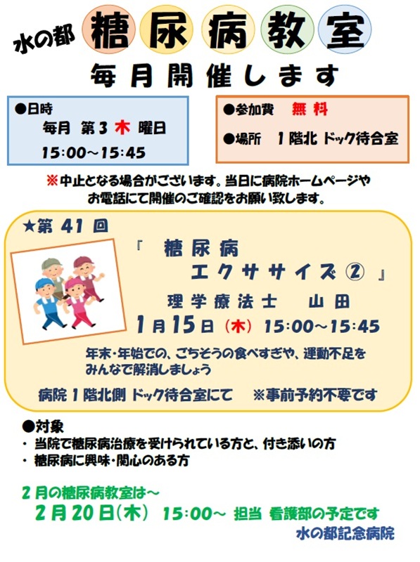 令和4年1月からは、 毎月1回 15:00 から 糖尿病教室も開催しています。